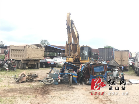 红网蓝山县分站5月14日讯(通讯员 陈星辉)为落实省委省政府的政策指示,纵深推进全县交通顽瘴痼疾整治,确保群众交通出行安全。5月14日上午,县交通运输局联合县公安局交警大队,在我县违法车辆停放处开展报废车辆集中销毁行动。
