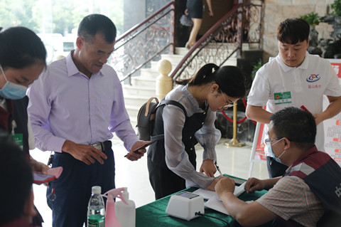 在报到点,医务工作人员对每一位前来报到的人大代表进行体温检测和健康码核查,严格落实防疫措施。随后,工作人员为前来报到的代表们逐一登记、发放参会资料,与会代表们在完成报到程序后,立刻开始为大会做准备。