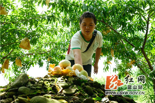 红网蓝山县分站6月15日讯(通讯员 梁利)6月15日,塔峰镇界头村绿康农业科技果园,新鲜上市的湖景蜜桃吸引南来北往的顾客前来采摘。
