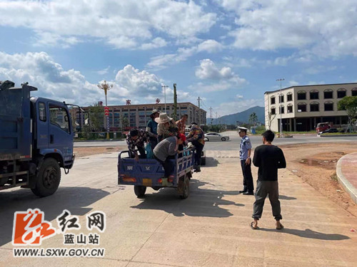 红网蓝山县分站8月24日讯(通讯员 曾庆屏)近日,县公安局交警大队在辖区开展道路交通安全“夏秋攻势”百日集中行动时查获一起三轮摩托车搭载多人严重交通违法行为,及时消除安全隐患。