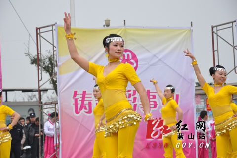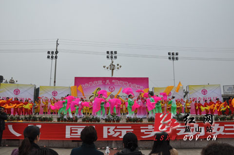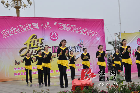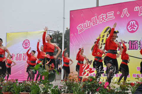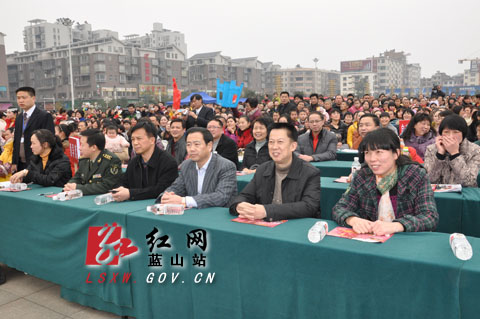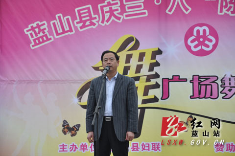 红网蓝山站3月13日讯(记者 黄俊北) 为热烈庆祝第102个国际三八妇女节,展示我县巾帼风采,3月12日下午,由县妇联举办的“庆三八节建和谐蓝山,铸精彩事业,创幸福生活”广场舞大赛在市政广场举行。县领导李年友、邱兴华、盘德平、汤文辉、刘素萍、唐发运、赵七秀、钟芝莉等到场祝贺并观看了比赛。县委常委、组织部长盘德平发表了热情洋溢的讲话。