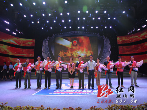 在晚会上,县公安局选送的节目《警嫂的情怀》,从县公安局三个不同岗位上警察的妻子倾述,讲述了做警察苦,做警察累,做警察危险,做警察需要家人和社会的理解与支持,警察是一个神圣的字眼,“心系人民”就意味着奉献,意味着付出,意味着舍小家为大家。在整个节目中,充分展现了警嫂的情与爱,公安民警甘于奉献、吃苦耐劳、勇于牺牲的高贵品质,表演声情并茂,情真意切,感人至深,催人泪下,受到全场热烈掌声。被评为最佳表演奖,受到了副市长、市公安局局长蒋建湘的高度评价。