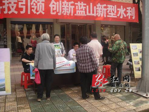 红网蓝山站5月23日讯(记者 谭金才 陈华晖) 5月21日上午,县水利局在塔峰镇商业街积极组织开展以“创新驱动、科技引领、建设创新型蓝山”为主题的水利科技知识宣传活动。