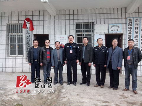 县人民政府副县长、公安局长黄小兵及政法委、森林公安局、浆洞瑶族乡和林场书等部门相关负责人为该执勤室揭牌。执勤室由蓝山县森林公安局派出一名干警常驻该场,协助该场开展执法检查,配合调查处理各类林业违法案件。