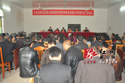 红网蓝山站3月24日讯(记者 雷志威 通讯员 黄江云) 3月24日,火市办事处召开了党的群众路线教育实践活动动员会。县委常委、宣传部长刘素萍及县群教办督导组成员出席会议。火市办事处各村的村支两委班子成员和第一支部书记参加会议。