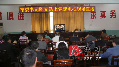 ▲4月12日上午九点,县商务局机关党员活动室里座无虚席,全体干部职工正认真地收看市委书记陈文浩讲授关于《提高干部执行力》的党课。