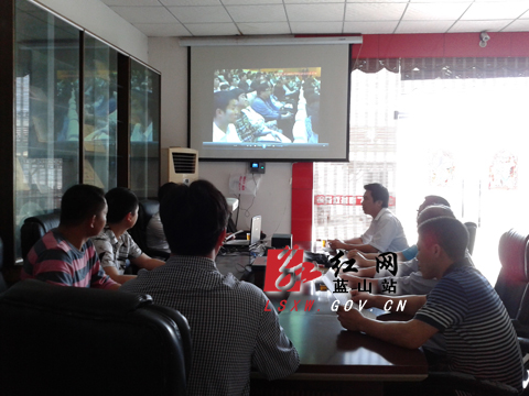 ▲4月12日,蓝山县公用事业局系统在自来水公司七楼会议室组织收看了市委书记陈文浩同志讲党课。