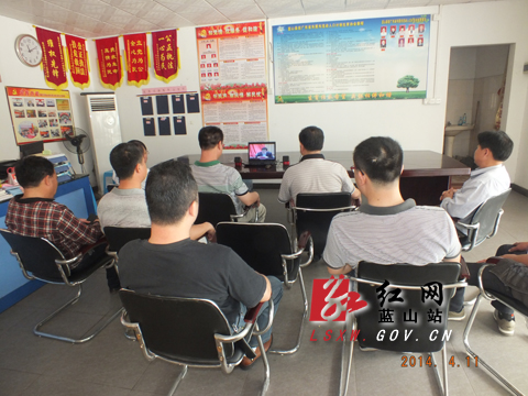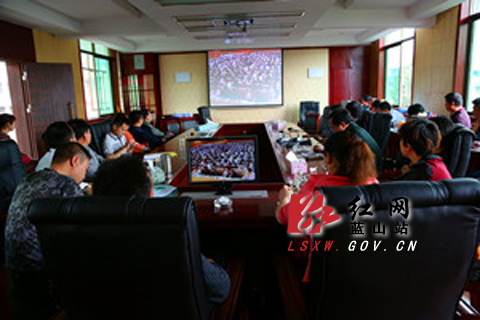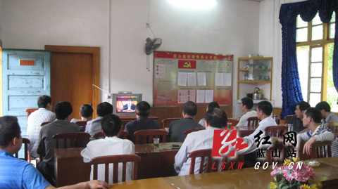 ▲4月12日上午,蓝山县人口计生委、财政局认真组织党员干部收听收看市委书记陈文浩讲授的以《提高干部执行力》为题的党课。(郑以亮)