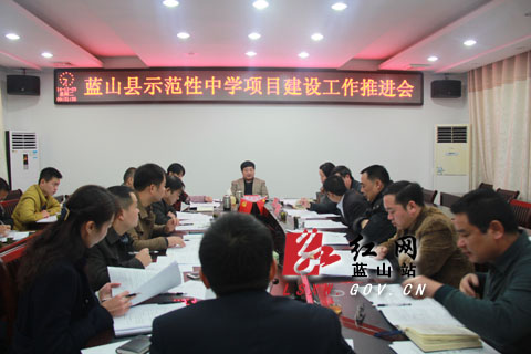 红网蓝山站12月24日讯(通讯员 袁新艳) 12月23日上午,示范性中学项目建设指挥长、人大常委会主任谭平玉在县人大常委会会议室主持召开示范性中学项目建设工作推进会。副指挥长刘素萍、钟芝莉、吴新波,指挥部各组正、副组长,征地拆迁安置组所有成员,国土资源局、城管执法局等相关人员参加会议。