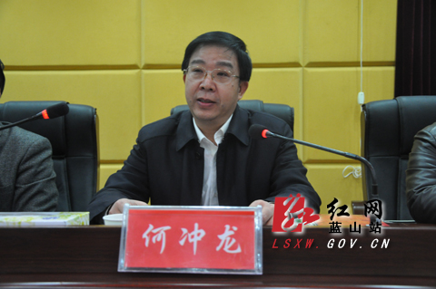 县委书记何冲龙代表蓝山县委、县政府向参加会议的领导和专家学者表示热烈的欢迎并致辞。他说,参加会议的领导和专家学者对县域经济社会的发展有着深刻而独到的研究和见解。目前,蓝山县经济发展正处于赶超跨越的关键时期,发展优势明显,也取得了一定的成绩。同时发展过程中的困难和困惑也很多,县委党校要在如何突破瓶颈、破解难题方面多做调查研究,深入思考、建言献策,在原来的基础上更好地发挥县政府的“智库”作用。感谢市委党校和县区兄弟党校的专家学者能把好的经验和好的成果带到蓝山,也渴望和欢迎对蓝山的党校工作和我县经济社会发展方方面面提出高贵的意见和建议。