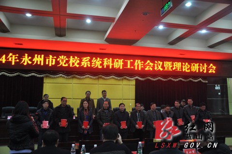 会上,市委党校常务副校长许洋名回顾总结了2014年的科研工作,对2015年的科研工作进行了研究部署,并对全市党校系统2014年度理论研讨会获奖论文作者进行表彰。中共蓝山县委党校荣获“科研组织奖”。