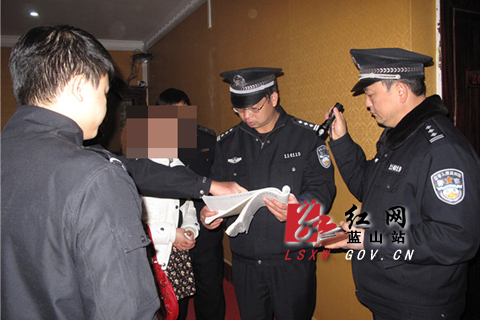 (公安干警细致盘查可疑住宿人员)