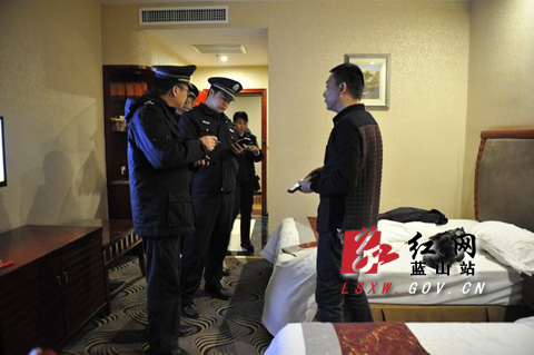 (公安干警检查宾馆住宿登记情况)