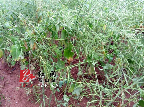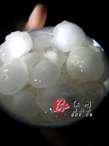 红网蓝山站4月20日讯(通讯员 骆春旺) 受地面冷空气影响,4月19日晚八点三十分左右,蓝山县祠堂圩、正市、洪观、楠市、土市、大洞、新圩等乡镇办事处出现了雷雨大风冰雹天气,晚上十点五分再度突然出现大风冰雹天气,虽然冰雹天气维持五分钟,但是灾情严重,到4月20日8:00时,全县普降暴雨,祠堂圩降水最大为82毫米。特别是正市、洪观、土市等乡镇受冰雹灾害较为严重,冰雹直径达2厘米左右。全县农作物受灾较严重的主要是蔬菜大棚、油菜、早稻秧田,以及李子、奈李、桃子等挂果类果树等,其主要表现为果树树枝折断和挂果掉落,油菜匍匐倒地,蔬菜大棚、水稻秧田地膜等被狂风刮倒、损毁。玉米、大豆、花生、豆角、黄瓜等蔬菜不同程度的受到影响。