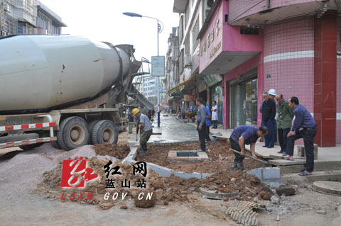 红网蓝山站10月13日讯(记者 刘扬) 10月13日,在环城路提质改造工程现场,记者看见一台水泥罐车正在倾倒水泥,工人有条不紊地把水泥处理平整。
