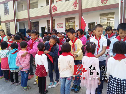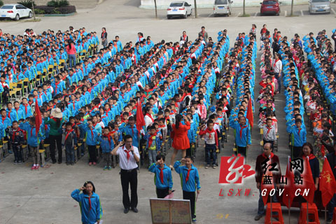 红网蓝山站10月14日讯 10月13日,为庆祝中国少年先锋队建队66周年,全县中心小学广泛开展了主题为“争做向上向善好队员”系列建队日纪念活动。各少先队通过举办入队仪式、升旗仪式、主题中队会、贫困少先队员资助等活动,吸纳新队员加入中国少年先锋队,对全体少先队员进行理想信念教育,让少先队员感受到组织的温暖,培养少先队员的爱国主义情操。