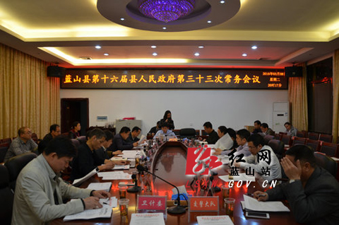 会议听取和讨论了关于蓝山县2016年义务教育合格学校建设规划,关于进一步加快开发区建设发展的若干意见,关于蓝山国家气象站搬迁建设的情况汇报,关于传达《关于认真学习贯彻全省安全生产监管执法年动员会精神的通知》内容,关于尹祖亮辞去公职的情况汇报。