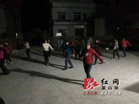 红网蓝山站3月30日讯(通讯员 朱琳) 尽管天气还多少留有冬日的气息,塔峰中洞村的活动中心却呈现一番别样热闹的景象,在活动中心的操场上,一群农村妇女伴着音乐扭动身体,孩子们围着大人打闹玩耍。“听说村里也跳起广场舞来了,还有人教,我一吃完饭就过来了。”晚上刚过7点,村民彭大姐就到活动中心,参加到姐妹们的舞蹈当中去。原本冷冷清清的操场,现在成了村民最爱去的地方,村民广场舞也成了中洞村一道亮丽的风景线。现在村民打麻将的少了,在一起交流的多了,既能锻炼身体,也增进了村民之间的感情。
