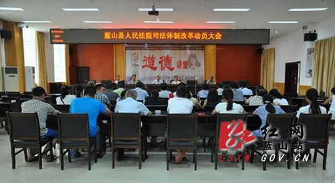 会议传达学习了省委、省高院司法体制改革精神以及全市司法体制改革动员大会会议精神。会议指出,动员大会标志着蓝山法院司法体制改革工作正式启动,全院干警要积极投身改革,把思想认识统一到中央、省委和市中院党组的最新决策部署上来,坚定推进司法体制改革的信心和决心。