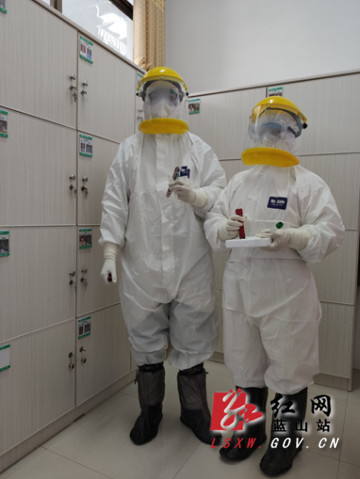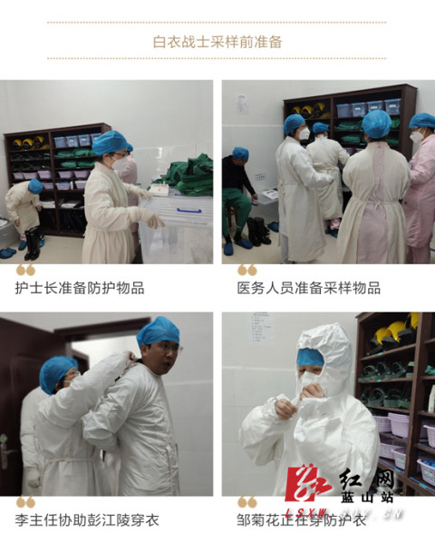 (“白衣战士”彭江陵、邹菊花准备采样)