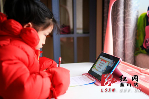 红网蓝山县分站2月6日讯(通讯员 彭华)2月5日,一年级小学生彭琬舒通过“学习强国”APP的“在家上学”栏目学习同步课程。因疫情造成延期开学,蓝山县各中小学校积极做好疫情防控宣传教育,每日监测学生健康状况,同时采取下发电子课件、指导收听网络同步课程等方式,让在家学生“停课不停学”,做到防疫和学习不误。