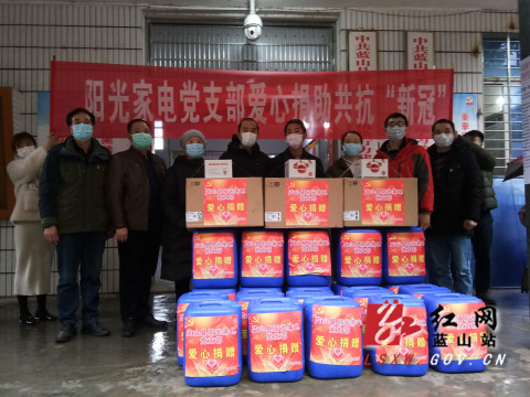 红网蓝山县分站2月7日讯(通讯员 唐淑云 方强)2月6日,蓝山县“两新”党组织--阳光家电党支部冒着大雨,将20桶(1000斤)84消毒液、三台微波炉送到县疫情防控物资保障组处,助力解决防疫紧缺物资。