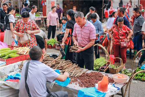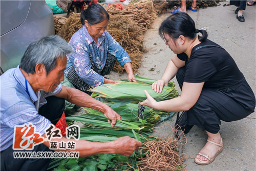 端午节的集市,除了鲜桃、杨梅、西瓜等当地特色时令水果外,粽子、艾草、中药材、水鸭、柴鸡等成了热销商品。端午时节,人们延续着千年习俗,选用艾草泡脚、泡澡,粽叶包粽子,雄黄入药驱虫,甘草、蒲公英泡茶,桂皮、八角、香叶调味,在大大小小的端午习俗中忆古惜今,“粽”享当下美好生活。