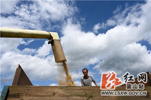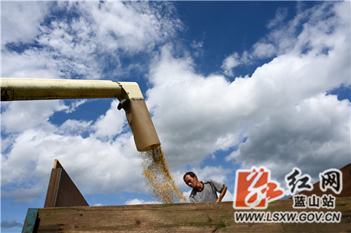 红网蓝山县分站7月8日讯(通讯员 梁利)7月8日,塔峰镇社下村,种粮大户罗周韶正组织农机抢收早稻,拉开了该县12.32万亩早稻丰收的序幕。