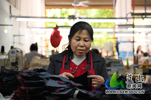 蓝山县新闻网5月6日讯(通讯员 梁利)5月4日,蓝山县塔峰镇湘源一号小区协和制衣厂,工人们正在赶制一批外贸订单。