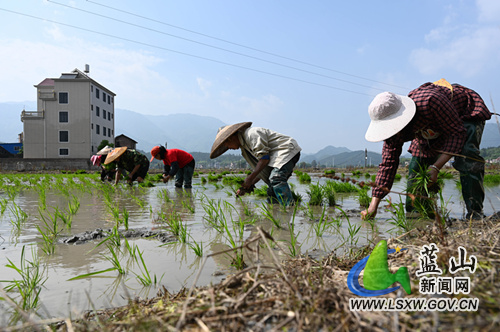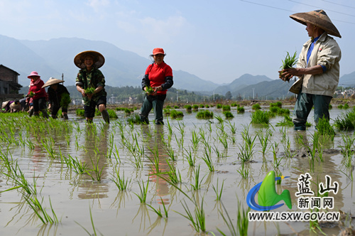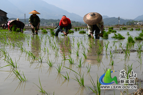 蓝山县新闻网5月6日讯(通讯员 梁利)近日,蓝山县所城镇联村,粮农们正在抢抓时节插早稻。时下正是春夏之交,粮农们必须抓住春天的尾巴插下早稻秧苗,以期夏季获得早稻丰收,为全年粮食丰收打下坚实基础。