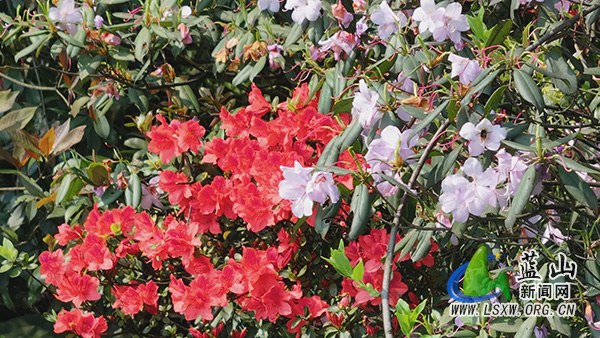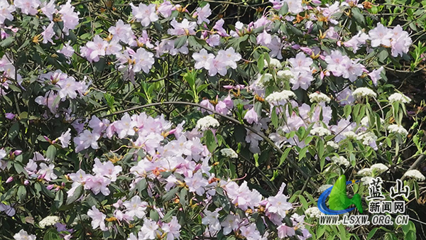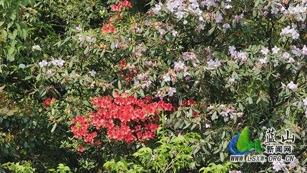 蓝山新闻网4月10日讯(通讯员 王玉珏 盘俊杰 邹倩 )近日,随着气温逐渐回升,蓝山县汇源瑶族乡的连片高山杜鹃陆续迎来盛花期,从山脚、山腰再到山顶,漫山遍野的高山杜鹃次第绽放,仿佛为青山披上一件斑斓外衣。这里的杜鹃为原生山林自然生长,火红、淡紫的花朵团团簇簇,层层叠叠,红得炽热明艳,紫得婉约动人,朵朵花瓣娇艳饱满,把大山装点得绚烂多姿,微风拂过,花瓣轻轻摇曳,枝叶间尽显蓬勃生机。
