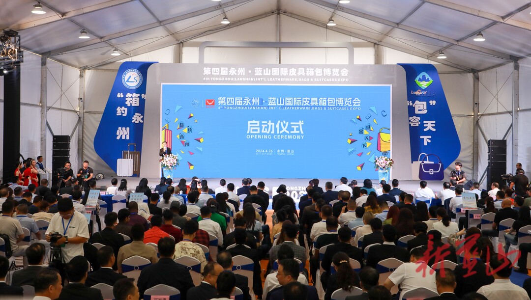 4月26日上午,第四届永州·蓝山国际皮具箱包博览会在皮具箱包科技产业园开幕。